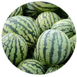 Watermelon is a fruit containing about 92 percent water. It contains Vitamins A, B6 and C. And is enriched with lots of antioxidants, amino acids and lycopene. Fat-free, low in sodium and calories, fresh Watermelon may be eaten in a variety of ways and is also often used to flavour summer drinks and smoothies.